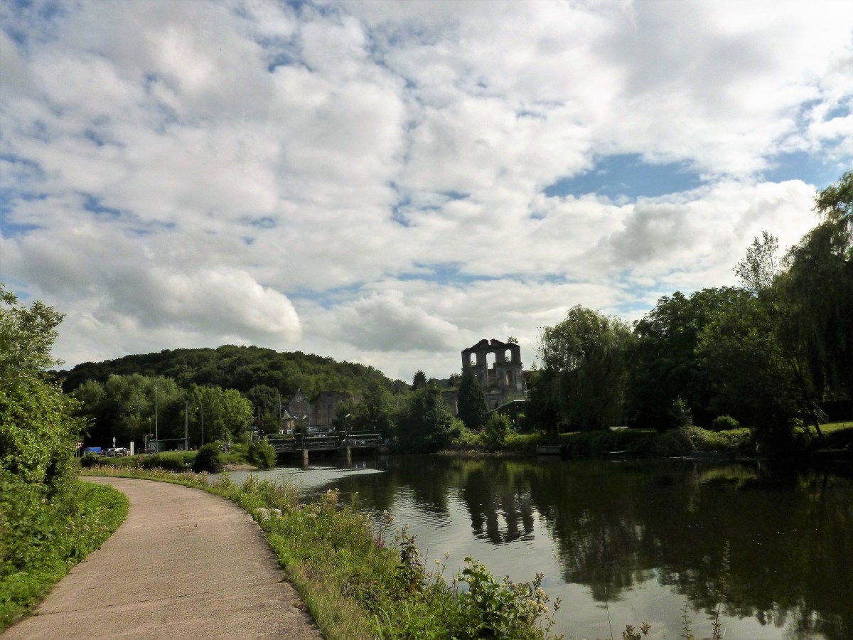 P1010770 copie (3) 1 Mai 2017 par mesbaladesphotossansfaon Poster un commentaire Les ruines de l’Abbaye d’Aulne au loin. Sambre et ruines de l’Abbaye d’Aulne.