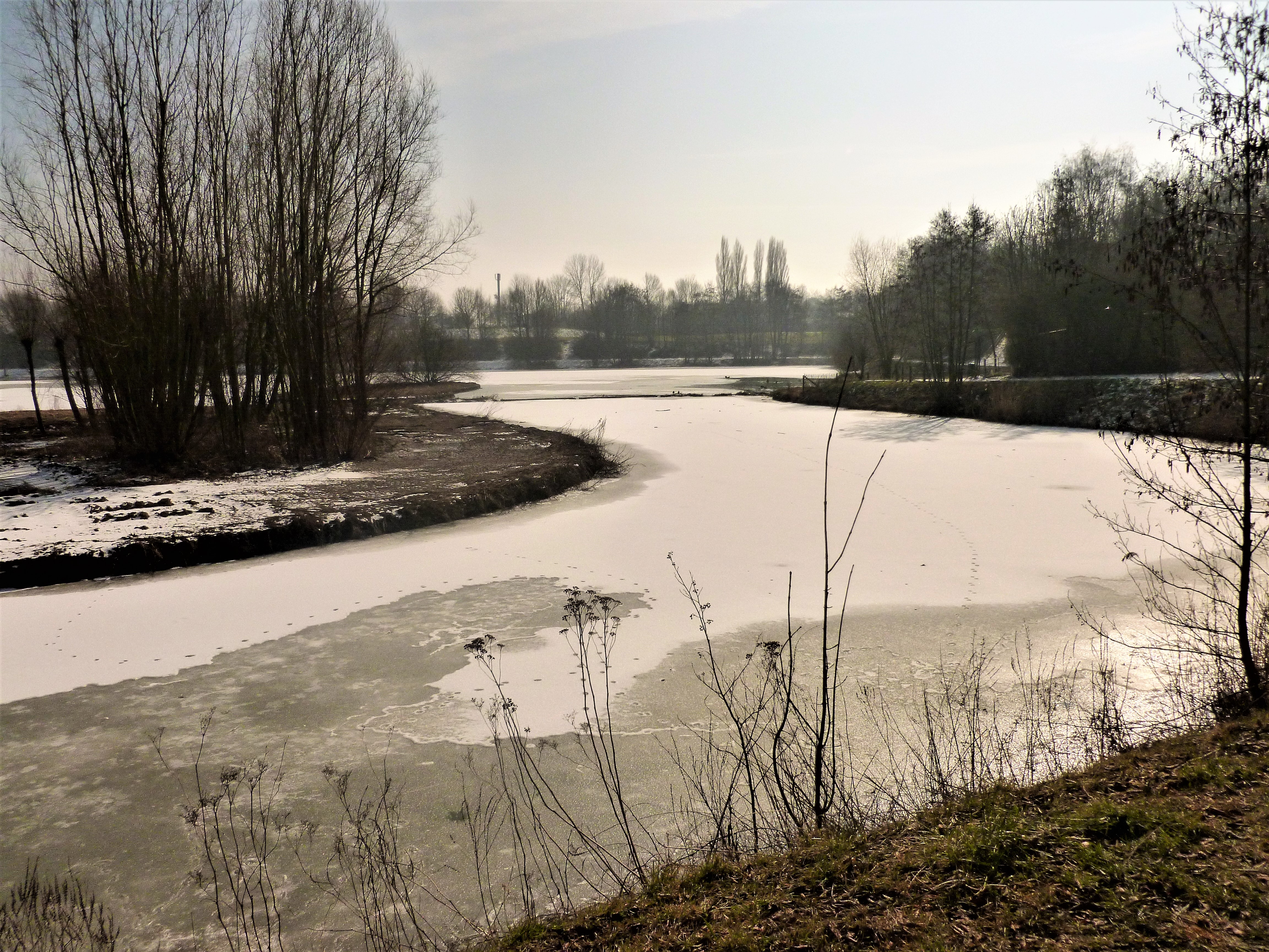 P1020687 6 mars 2018 par mesbaladesphotossansfaon Poster un commentaire Traces sur l’étang gelé. Etangs de Neerpede en hiver.