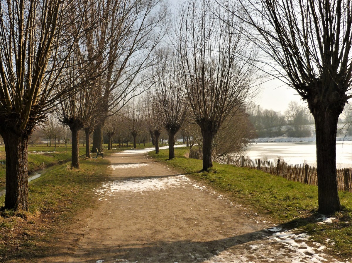 P1020688 6 mars 2018 par mesbaladesphotossansfaon Poster un commentaire Un soleil timide qui fait fondre la neige des allées. Etangs de Neerpede en hiver.