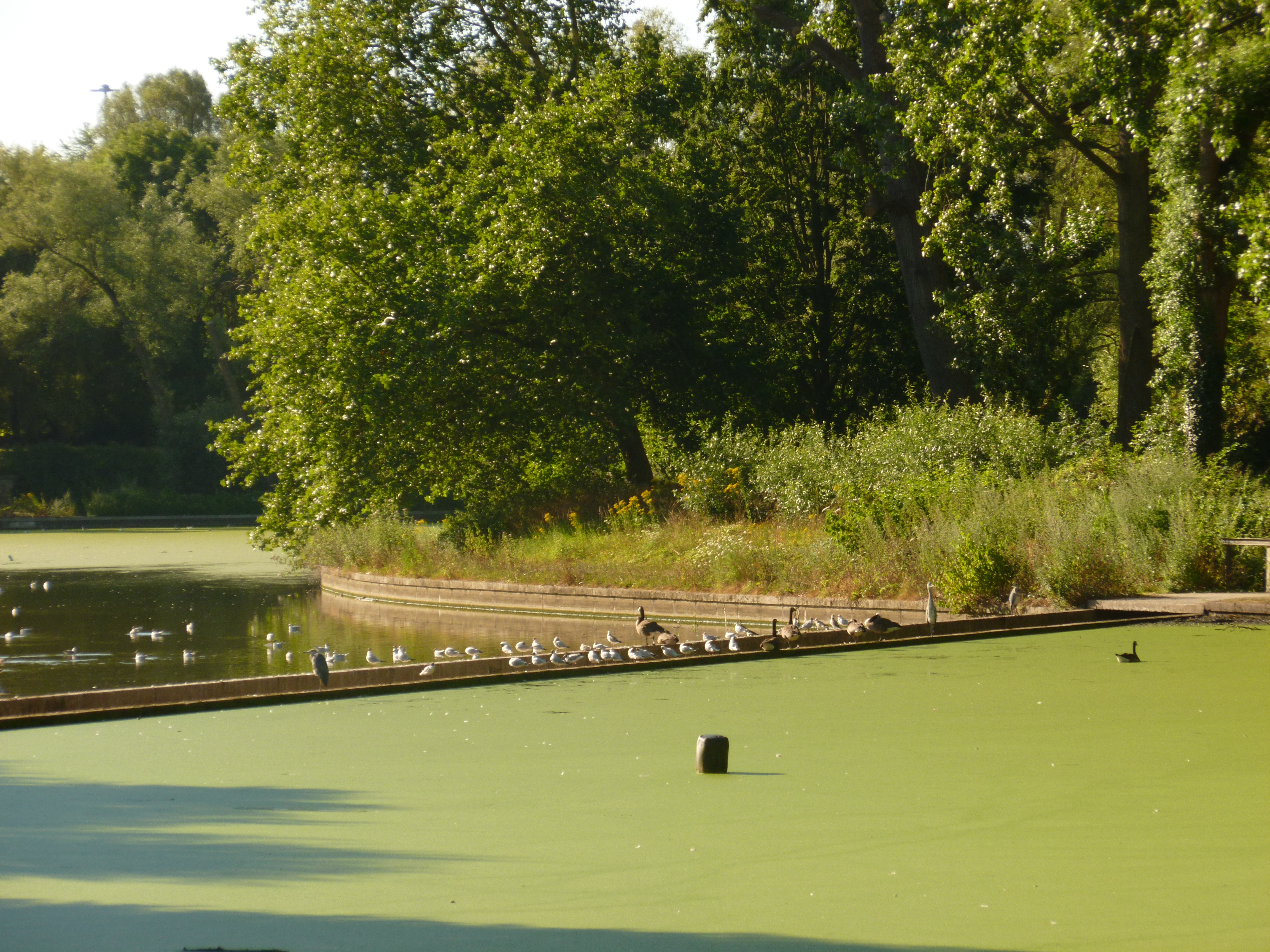 P1020992 4 juillet 2019 par mesbaladesphotossansfaon Poster un commentaire 2hérons à droite, perdus dans les mouettes et les bernaches. Etangs de Neerpede.